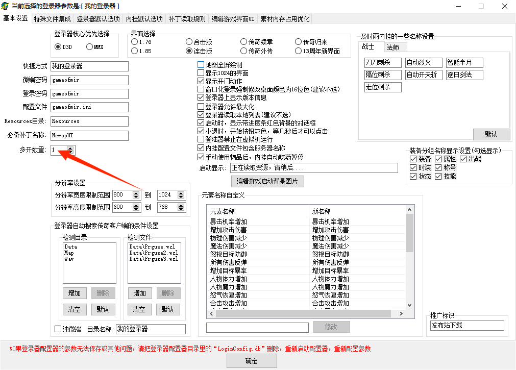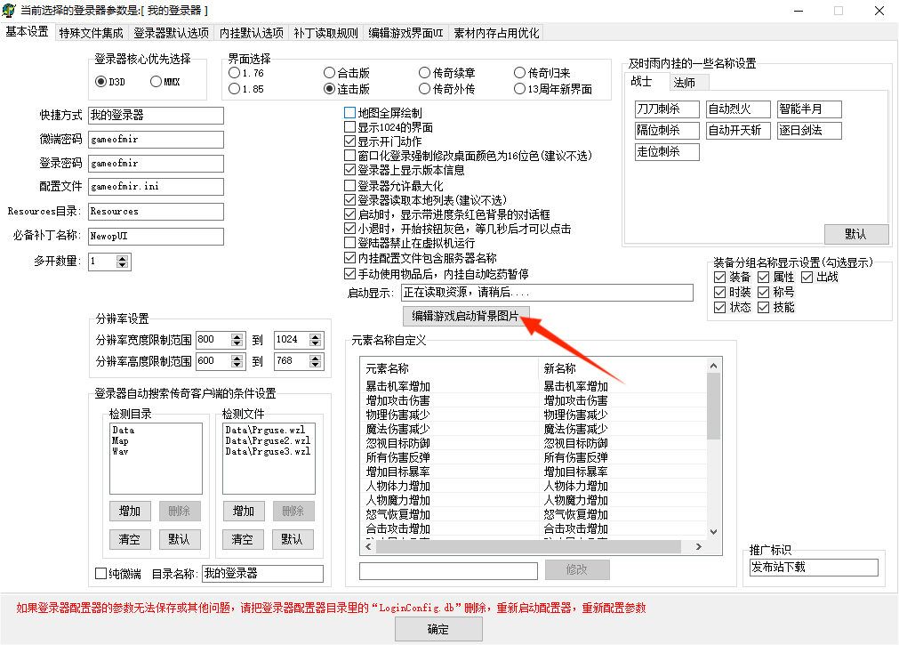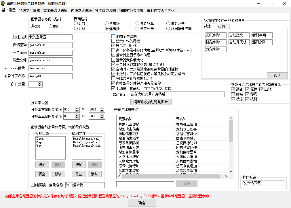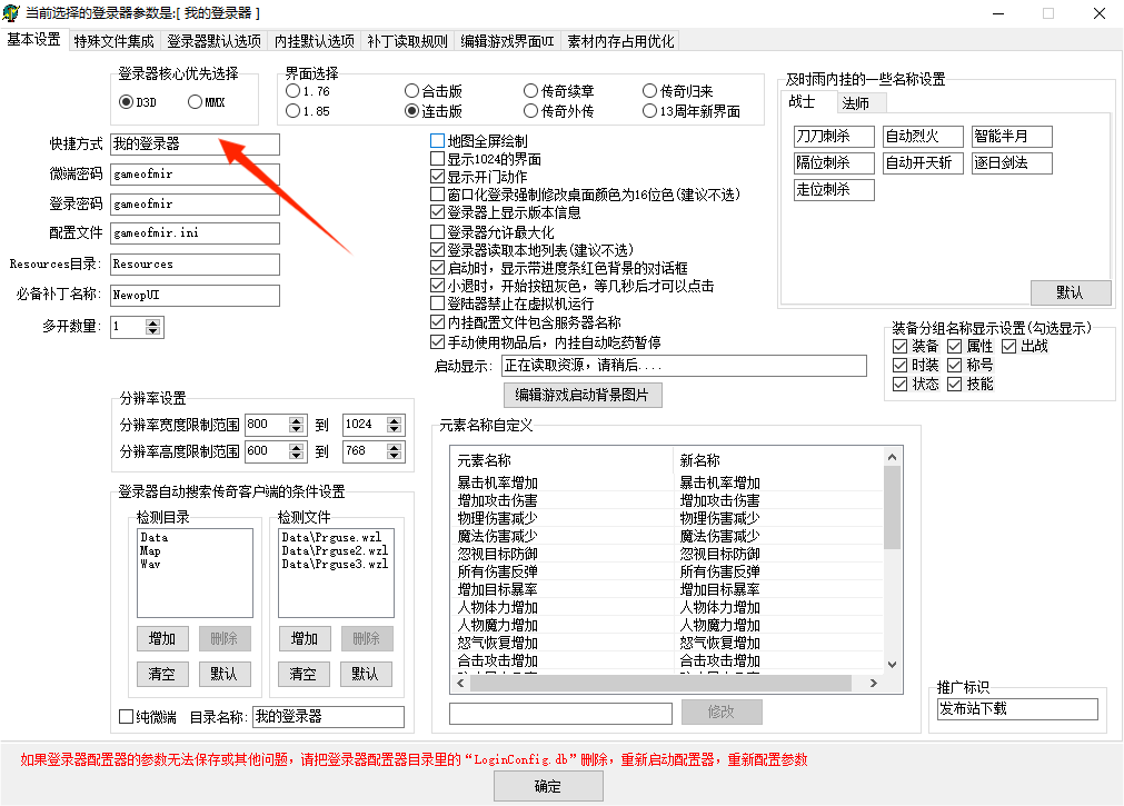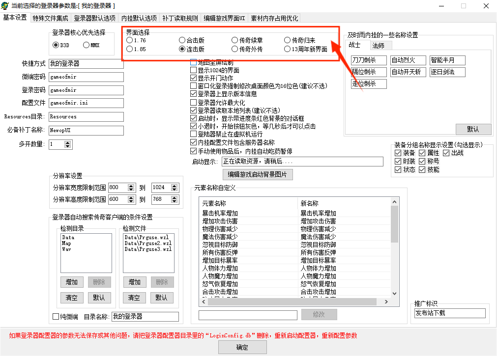 选择传奇归来,配置后的登陆器必须放入传奇归来客户端里才能正常游戏